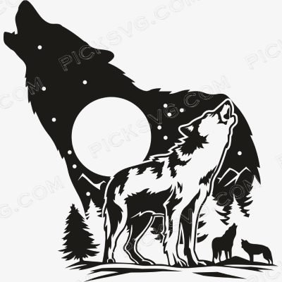 Howling Wolf Night Full Moon SVG – Digital Download