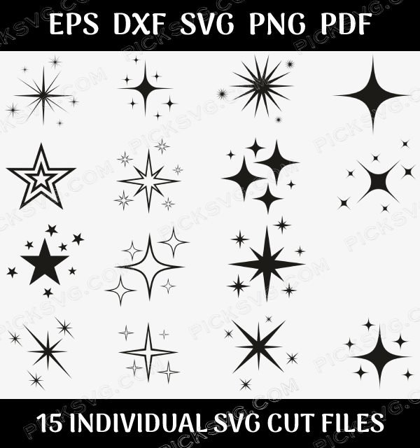 Download Sparkle Stars Bundle SVG DXF, Cricut cut files digital file.